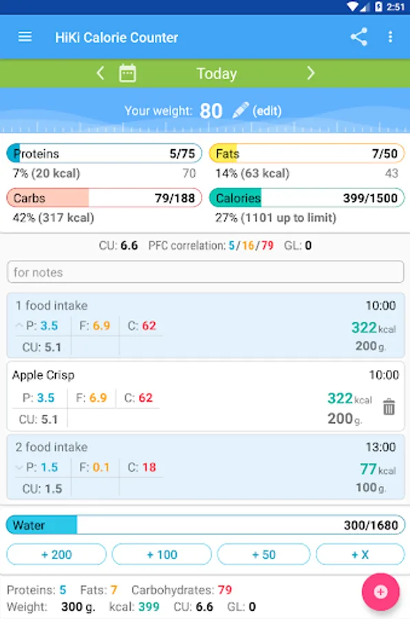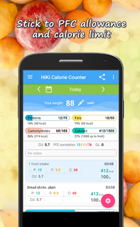The application will automatically count your daily calorie allowance and PCF correlation depending on your parameters and activity. Thousands of people all over the world use HiKi Calorie Counter every day, join us!