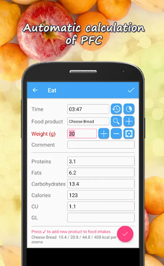 • Food intake tracking that allows you to make notes in your food diary