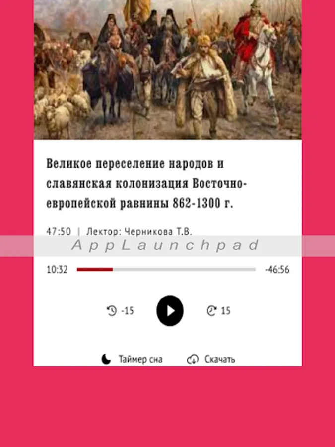 In the application you can find lectures and interviews by recognized professors, candidates and doctors of science, researchers, journalists, historians, museum staff.
