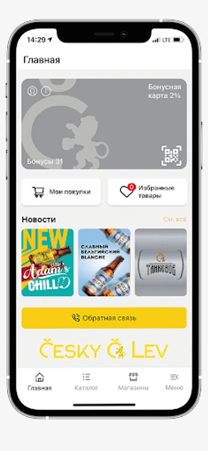 Branded shops of the "Czech Lev" chain are real beer in accordance with GOST, natural cider, kvass, lemonades, snacks, fresh fish, cheeses and other high-quality products. We have affordable prices and an attractive loyalty program.
