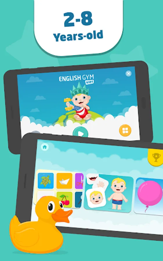 English Gym Kids💪 - is an educational app. Playing and learning we help to understand and memorize basic English words. EG Kids is targeted at children from 3 to 8 years old, it responds to their attention span and memory features.