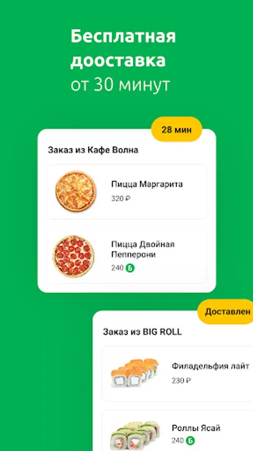 Delivery of rolls, pizza, pasta, burgers, salads and hot meals from the city's leading restaurants! With Us "Kitchen", "Drink Coffee", "White Rabbit", "Seagull", "Cafe Wave", "PizzBurger", "TRAVA", "Noodles", "Fortecia", "Mama mia", "Tasty rolls" , as well as large network and local deliveries of the city!