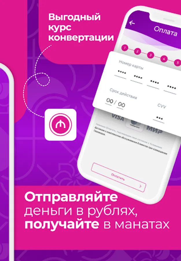 • Select the currency for receiving the transfer: rubles, manats, US dollars or euros.