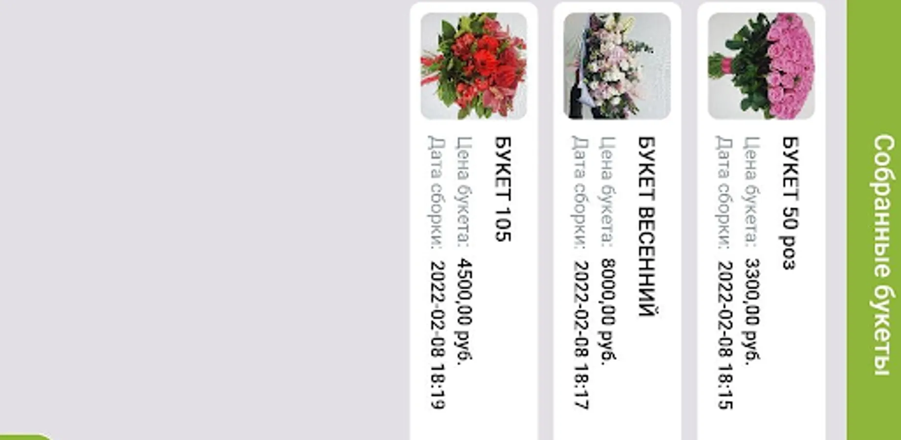 The application allows florists to sell, assemble a bouquet, place an order from a mobile device