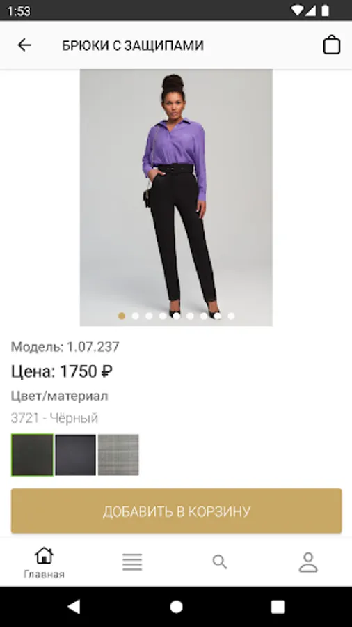 In the application, you can explore all our products: trousers, blazers and jackets, shirts and blouses, dresses, overalls, skirts and more.