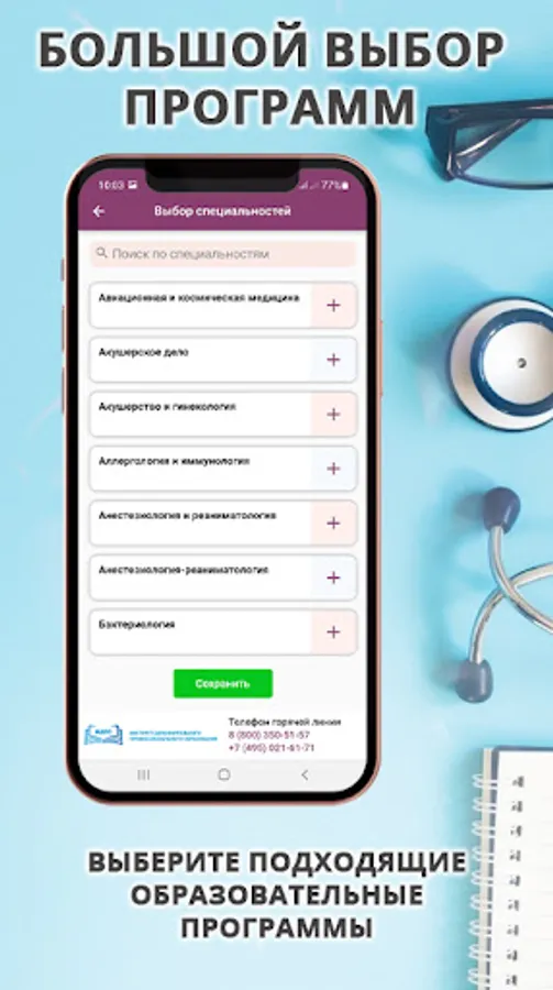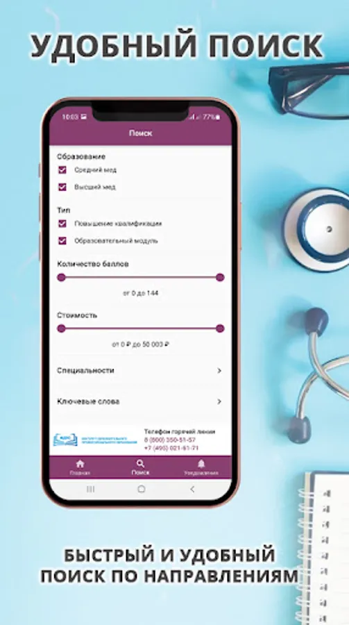 • additionally, the user can specify the required parameters and find the necessary CME courses. This makes it possible to search for highly specialized courses of study;
