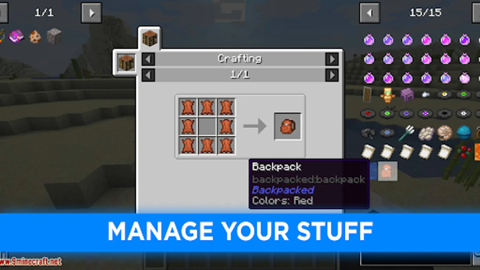 Are you familiar with the situation when you collect resources and suddenly run out of space in the inventory? And there are diamonds ahead and you are tremblingly throwing resources out of the inventory. But I will tell you that a backpack appeared in minecraft. Yes, now you can put things not only in the inventory, but also in the backpack mod, which by the way looks very cool. Minecraft mods have always surprised sandbox players and pleased them. I am sure that you will like backpacks for minecraft, which will definitely help you. Now you should not think about the fact that the place will end soon and you need to go back. If you want, you can use it as a backpack for minecraft school. The mod for backpacks in minecraft for phone and PC is already available in our application. Download mods for minecraft backpacks and have fun. The backpack mod is worked out to the smallest detail and when you open it, you hear the sound of lightning. Tell all your friends about the mods for minecraft backpacks! Also, our application contains the best mods for minecraft and addons for minecraft or new mods for minecraft 2021.