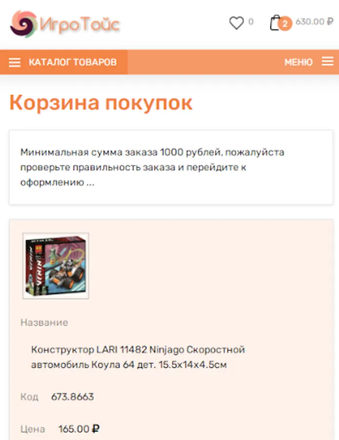 Application for ordering toys in bulk from the Igrotoys Company https://igrotoys.ru