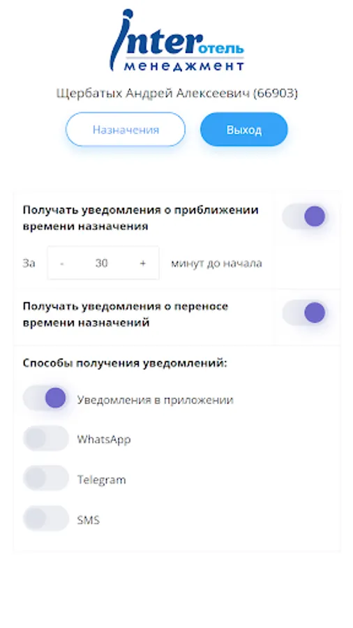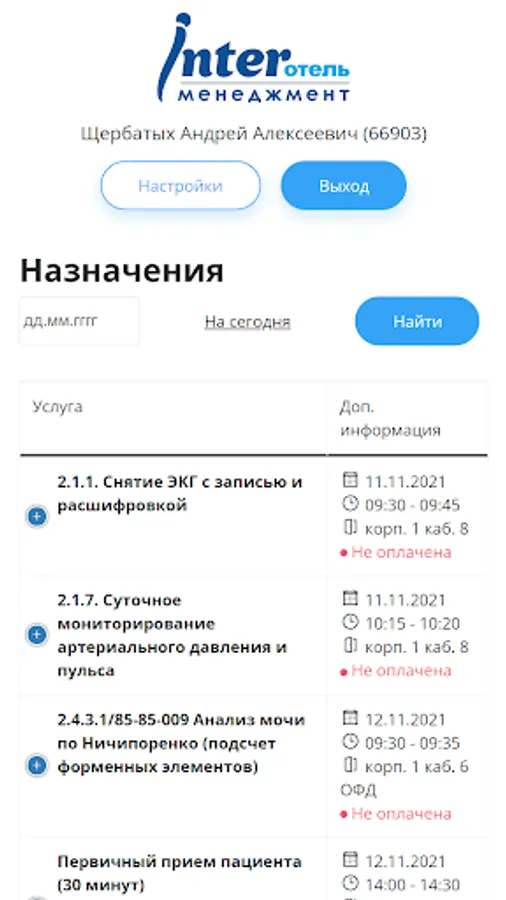 Application for doctors and patients in medical institutions with the installed system "InterHotel - Medicine"