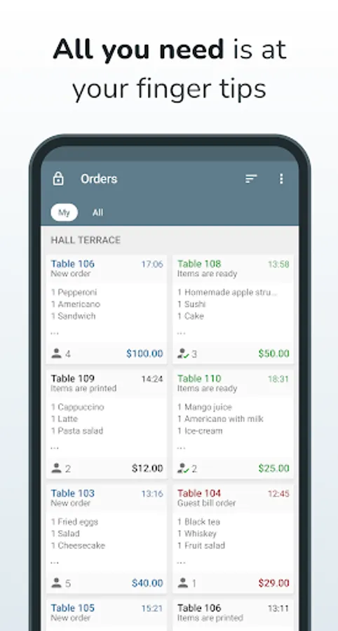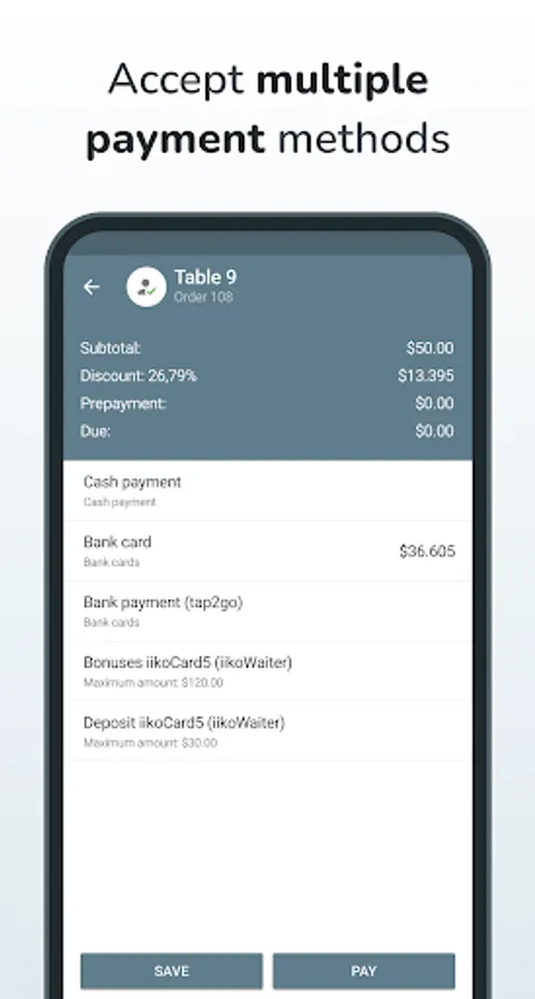 iikoWaiter makes it easy for your staff to take orders and payments, enabling them to handle a greater number of transactions in much less time.