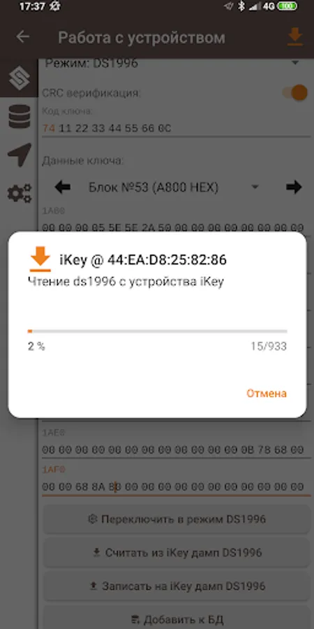 Working with iKey key emulator: The iKey replaces the intercom keychain. The application allows you to send any key codes to the device. Using GPS, when approaching the entrance, the code can be sent to the device automatically. The application allows you to update your device. When operating in DS1996 emulation mode, download and upload of data is supported. Learn more: https://ikey.ru/ikey/