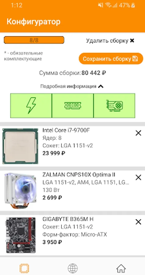 ✓ Build assemblies from compatible components. The application will tell you about the shortcomings.