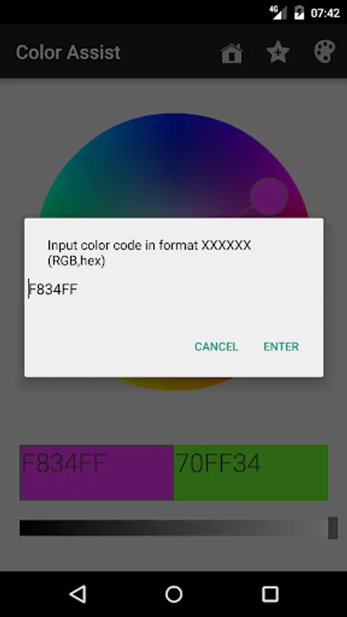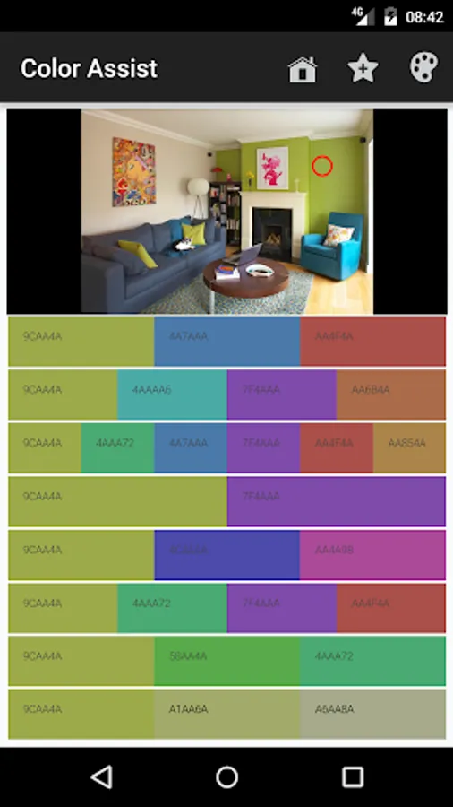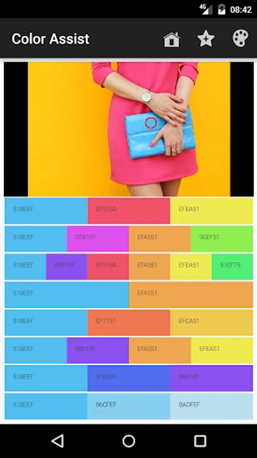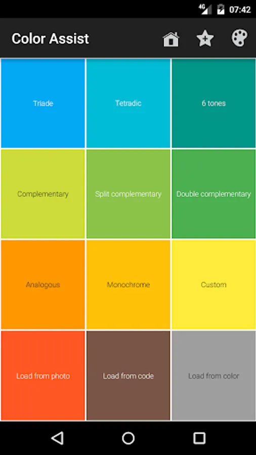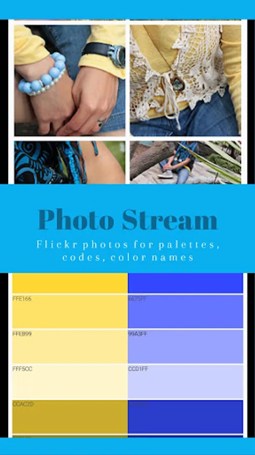 It is possible to upload photos, combine colors from color code and human name, save palettes.