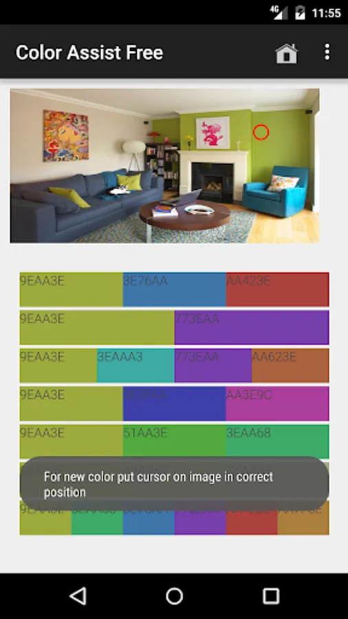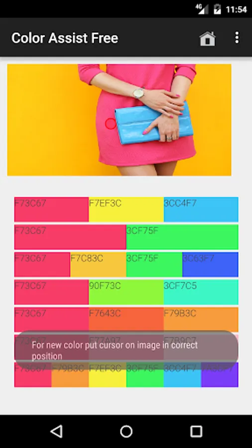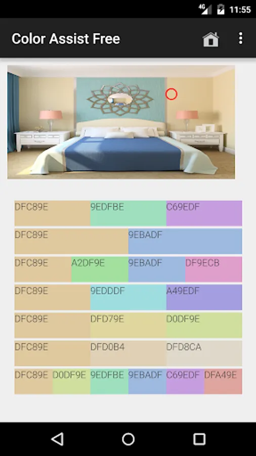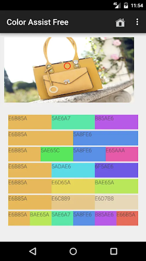 Take an inspiring photo and click on the object of interest, and the application will select color combinations for it.