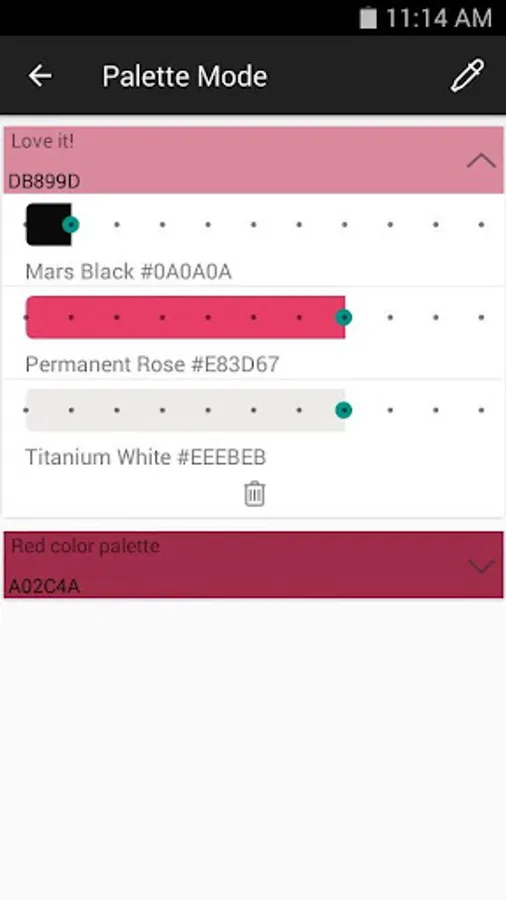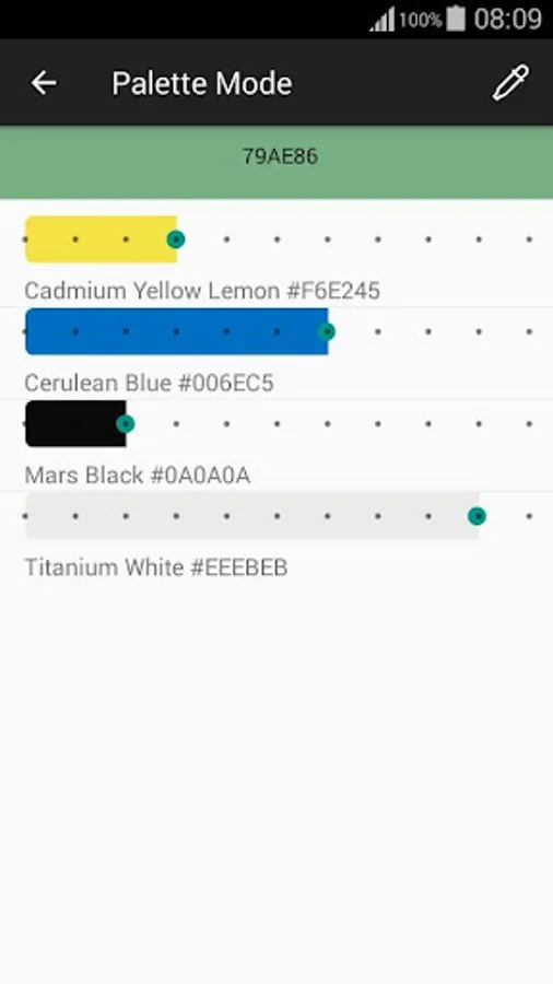 • In mode Palettes you can mix multiple colours with proportion and store result.