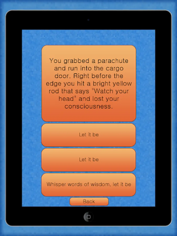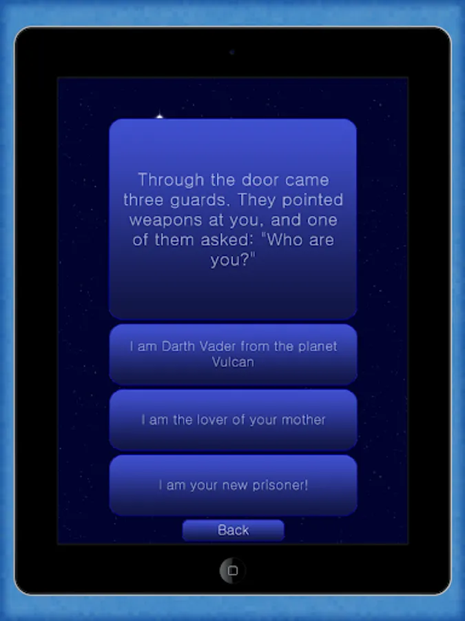 Impossible Quest is a funny text based adventure with multiple endings. You choose your own story!