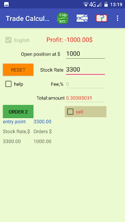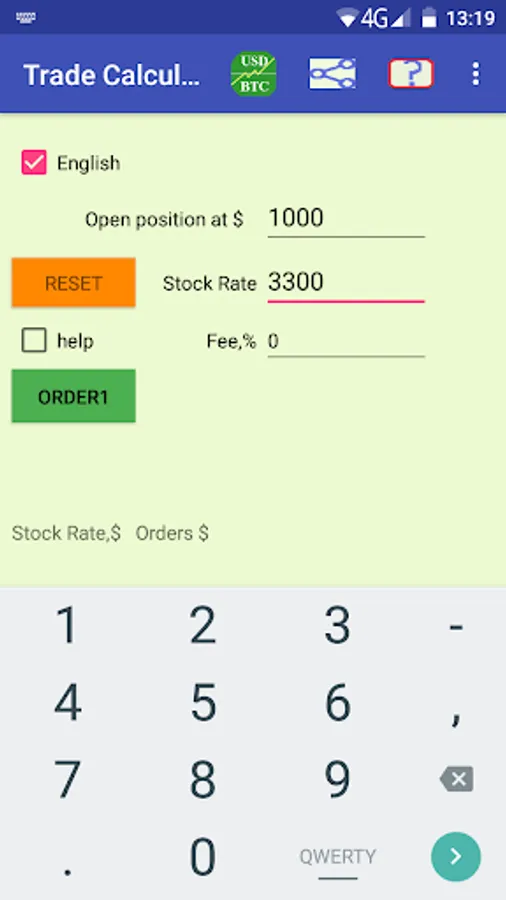 To start calculation, should to put input data ('order amount', 'price', 'fee').