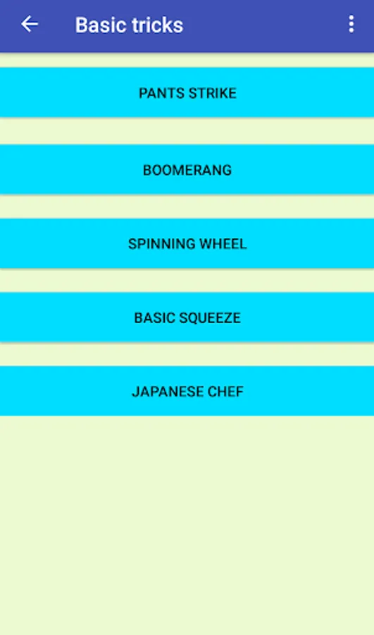 Includes such tricks as: 'Pants Strike', 'Spinning Wheel', 'Boomerang' and other basic tricks.