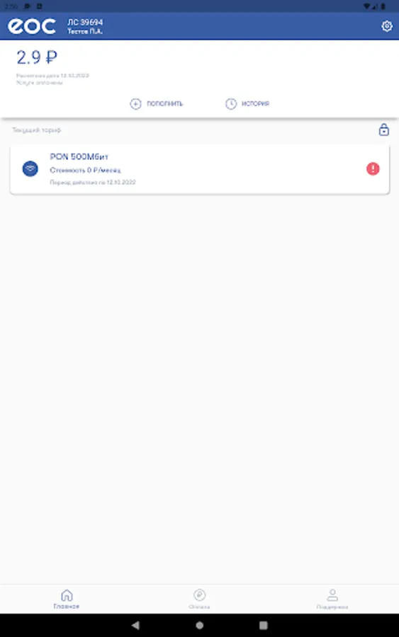 Your personal account, which is always in hand. Free application "EOS Cabinet" for balance control and service management.