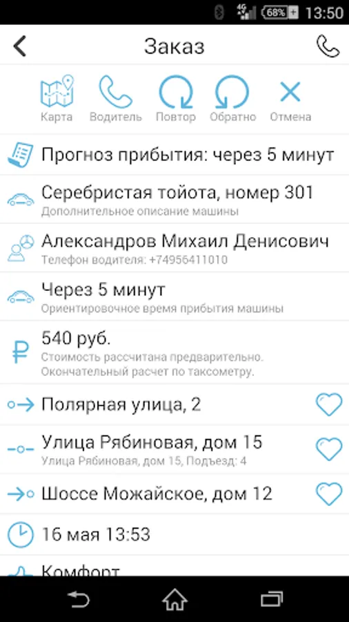 - Flexible configuration parameters of the order, as well as the opportunity to select additional services provided by the taxi station