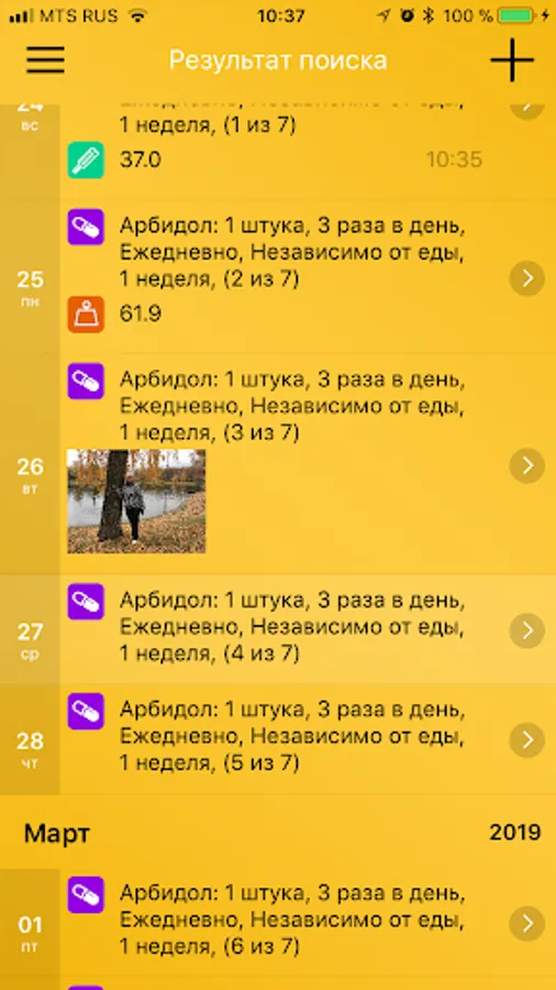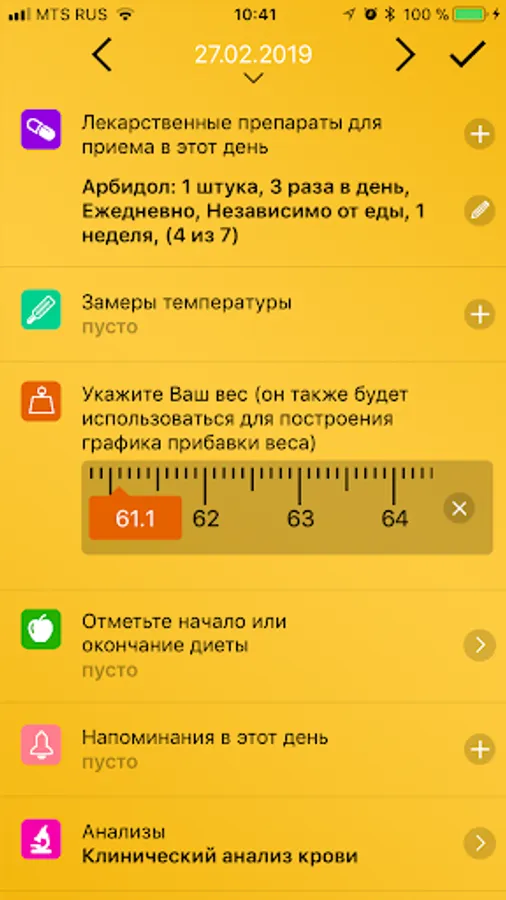 - A special drug planner, which is integrated into the diary, will help you easily create a schedule for taking them for each day.