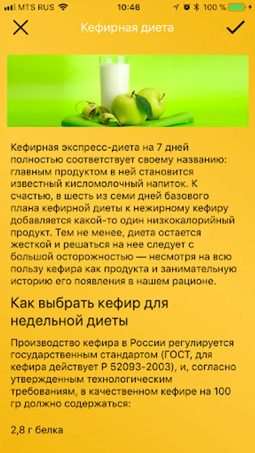 - If you mark the beginning of one of the seven diet options in the program, the program will display the daily menu of this diet in the Schedule for the day section