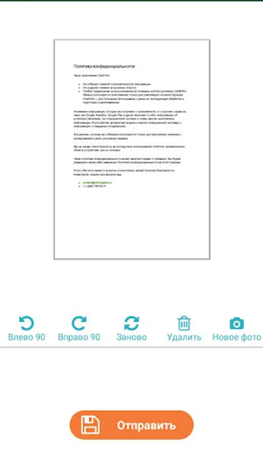 Mobile scanner for InfoLogistics OnePoint system. Creates scanned PDF documents by taking photos. When photographing identifies the area of the document and eliminates the arising distortion. After the document is loaded into the system, the document is automatically indexed according to the specified rules.