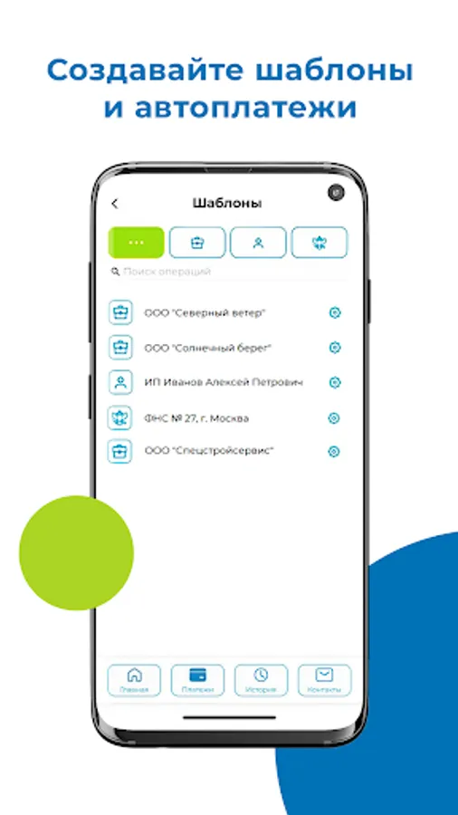 • creation of payment templates