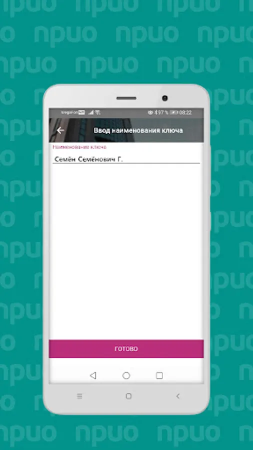 The user gets access to the key through his mobile device, by login and password, saving the pin code.