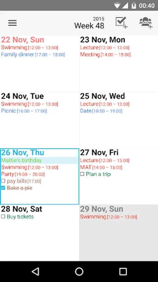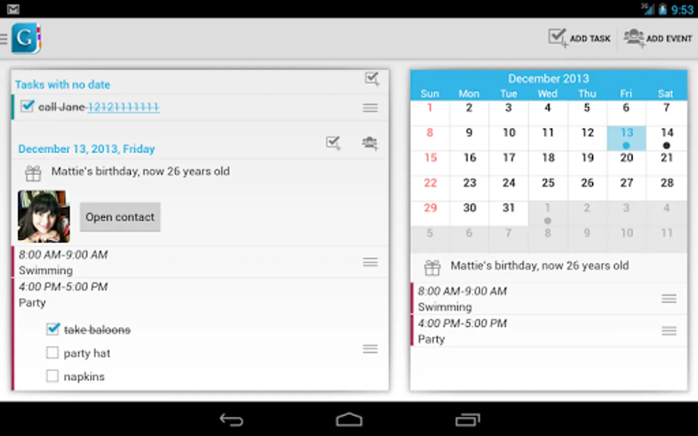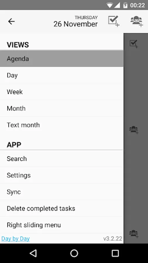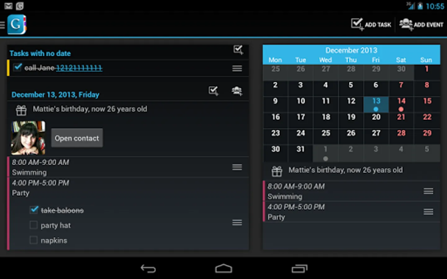 Day by Day is a planning application designed to fully implement Google Calendar and Google Tasks as an all-in-one Android application. With its help you can plan your future schedule using any Android device and this schedule will be available for all your phones and tablets connected to Internet.