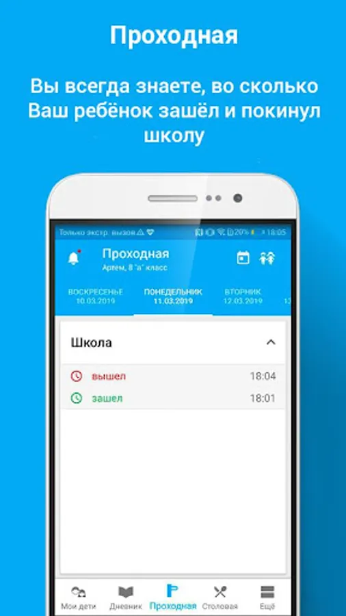 "Checkpoint" - parents have the opportunity to track the child's passage through the "Electronic checkpoint" (an access control system in an educational institution) and receive push-notifications about each child's entrance / exit from the educational institution.