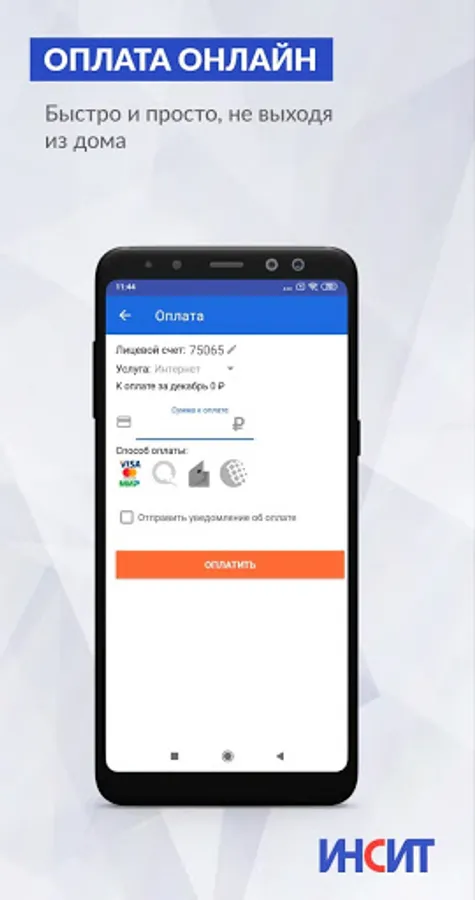 To start using the application, you need to be a subscriber of INSIT and make sure that your phone number is linked to your personal account! To enter, enter this number (you will receive a one-time SMS password) or login and password from your personal account (specified in the contract).
