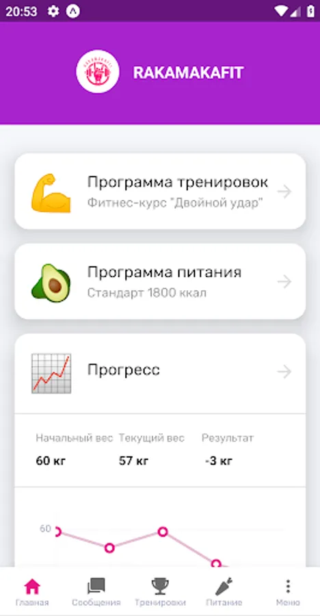 The dream body is now available to everyone! RAKAMAKAFIT is a personal trainer and nutritionist on your phone. With him you will always be happy with your figure.