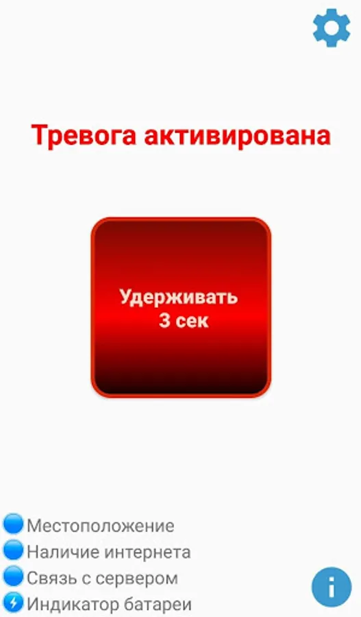 The main function of the application is to send an alarm message to the server with the ability to transmit the current location of the user.