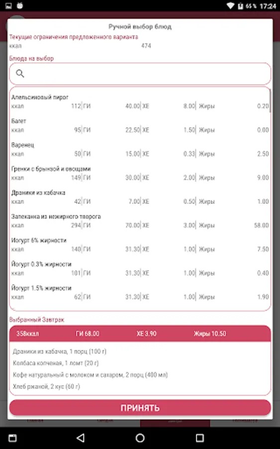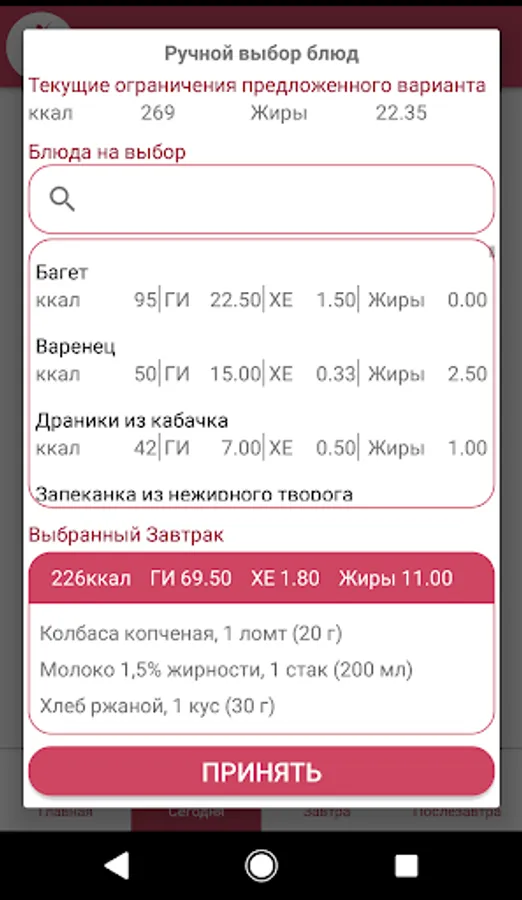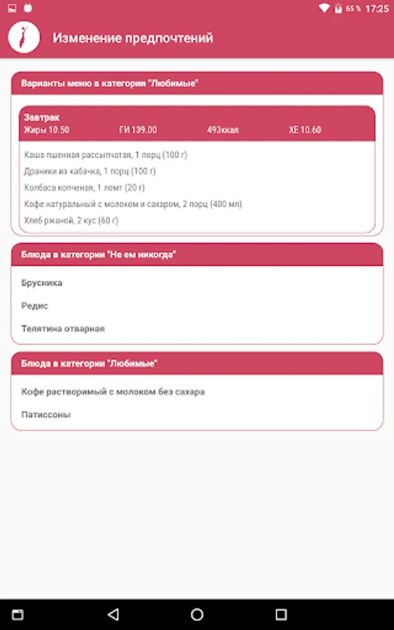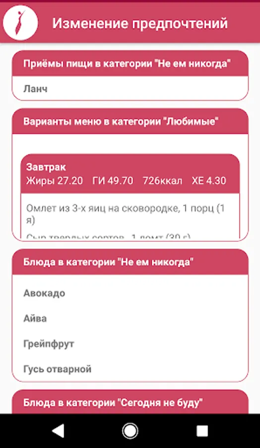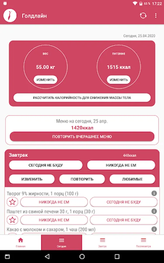 The most important thing! The menu is formed by one button, there is no need to calculate and write anything. And one more pleasant bonus - the menu is offered three days in advance, you can have time to buy the necessary products. And if something of the dishes remains from yesterday, you can simply indicate "repeat yesterday's menu". It's just great!
