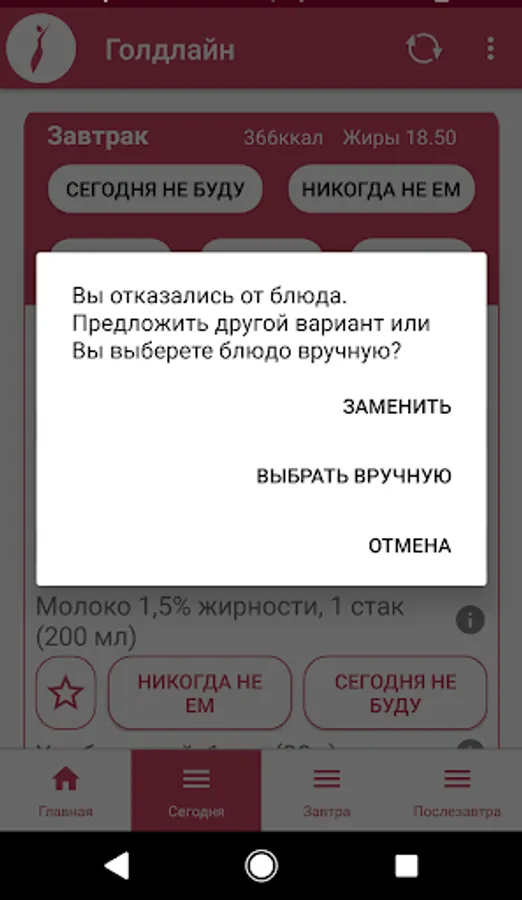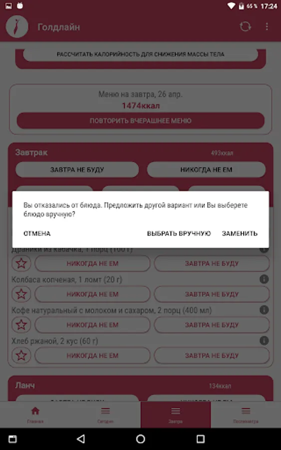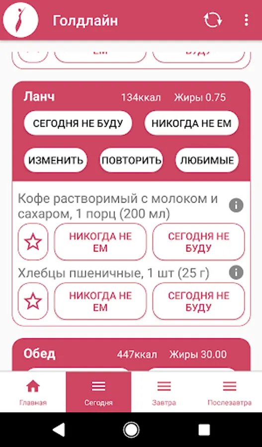 Of course, the Goldline app doesn't know anything about your taste habits and preferences from the very beginning, but it learns quickly. It is enough to indicate that you never eat, and it will remember this forever.