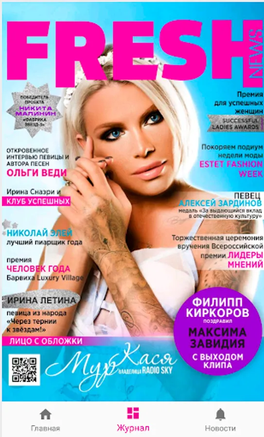 FRESH NEWS is a unique magazine in its format, presented in print and electronic versions, has an original design and an interesting presentation of information. Bright articles, stylish photo projects, sincere stories of stars.