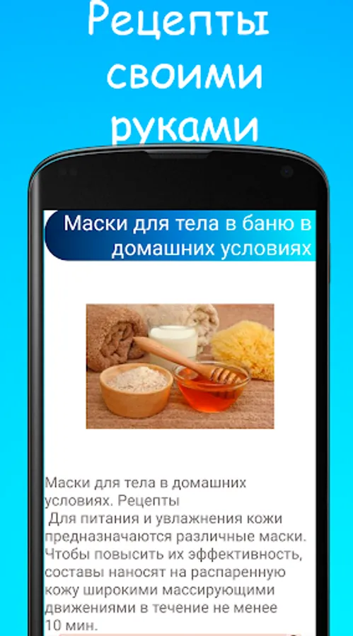 In the Recipes of Beauty app, we share the best recipes for body masks and how to make them at home.