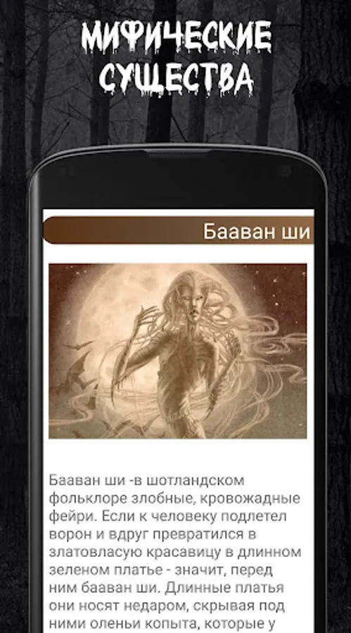 Here you will find all mythical creatures, from vampires to werewolves, their description and legends. Habitat and origin of each creature.