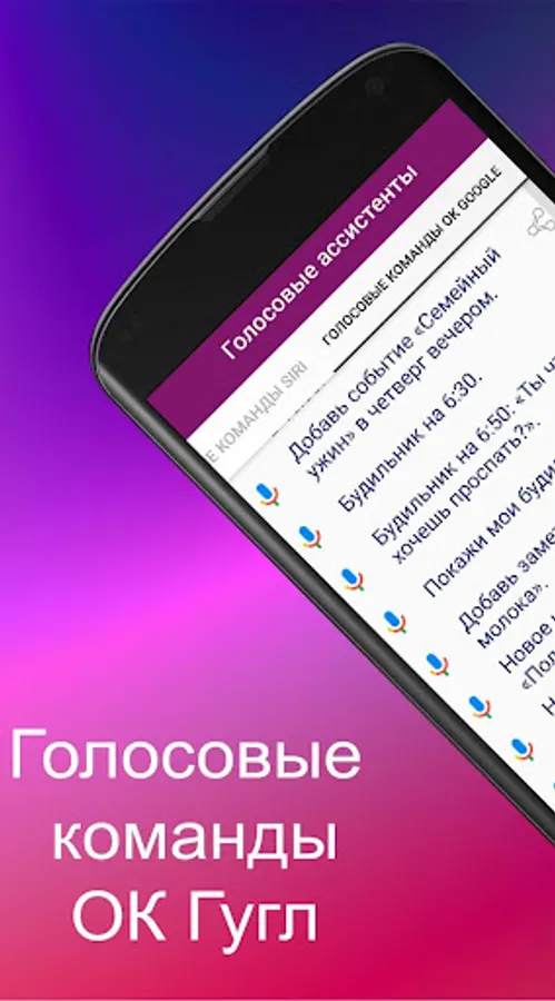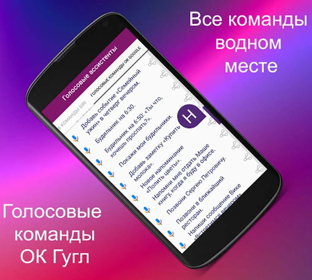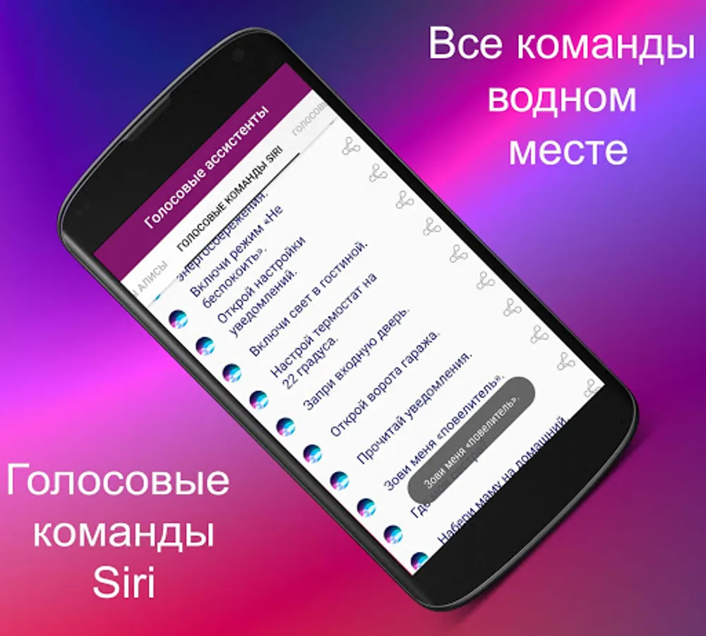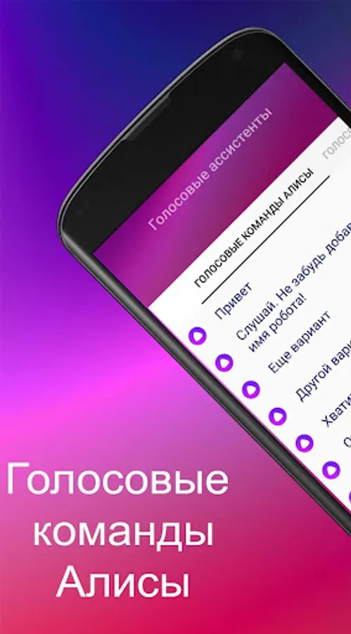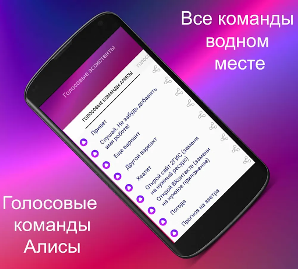 The application is a convenient collection of commands, all names belong to the legal owners and creators of voice assistants.