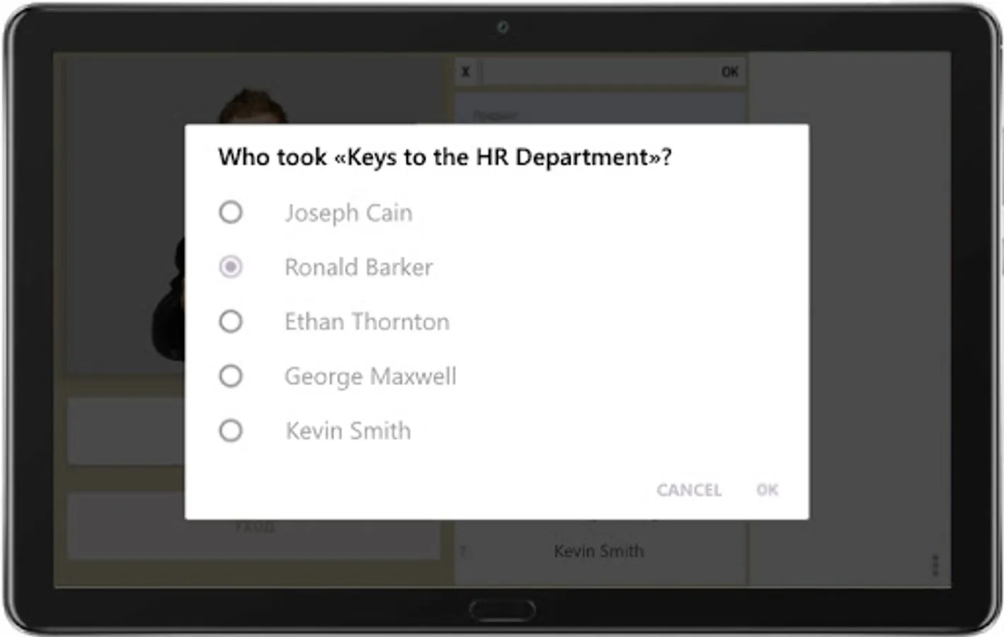 Turn your phone or tablet into an advanced check-in and check-out monitoring terminal or terminal for keeping records of whom and when took/returned an item/object (keys, equipment, etc.).