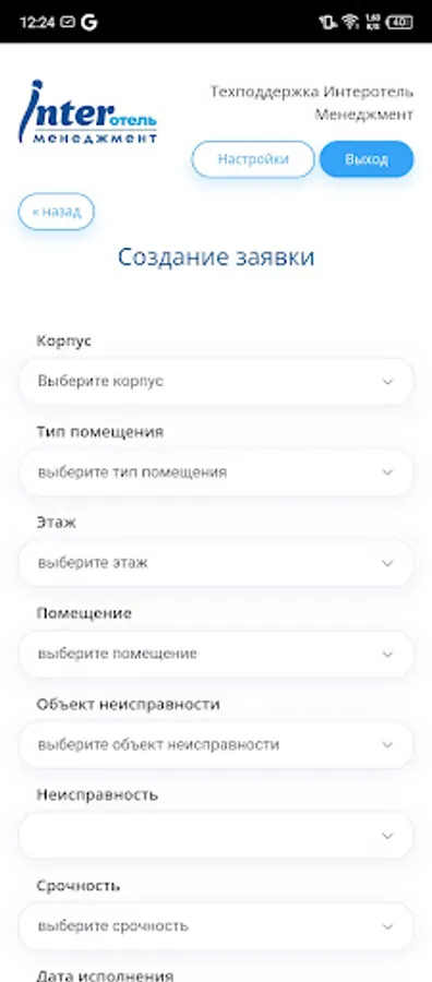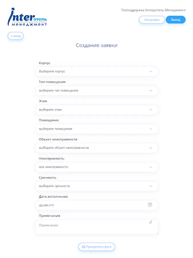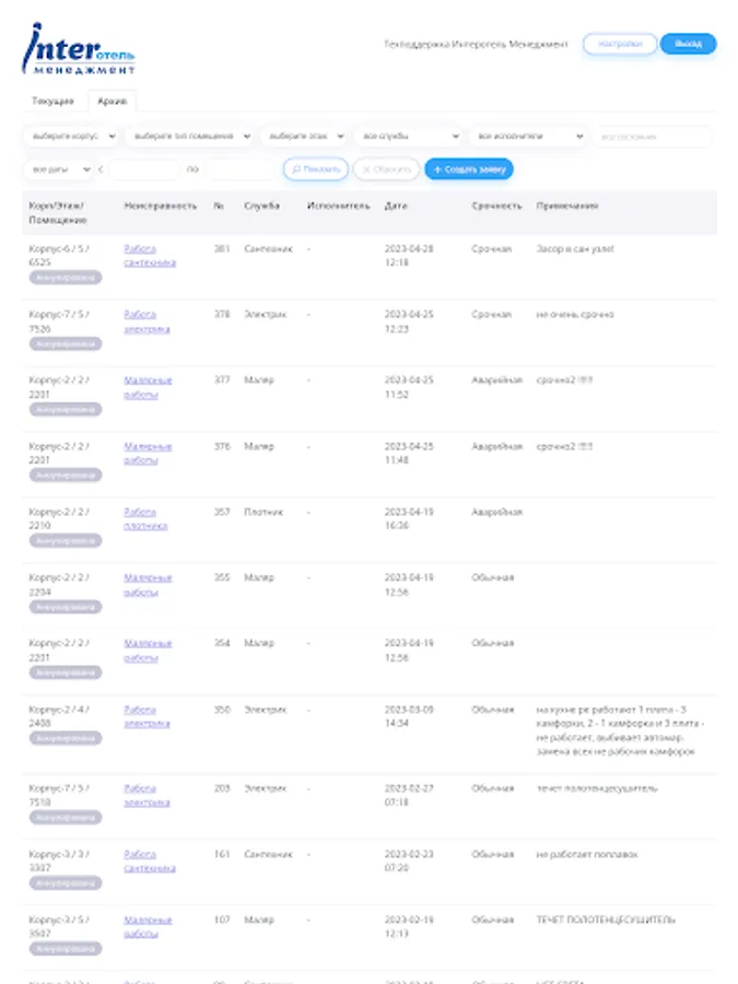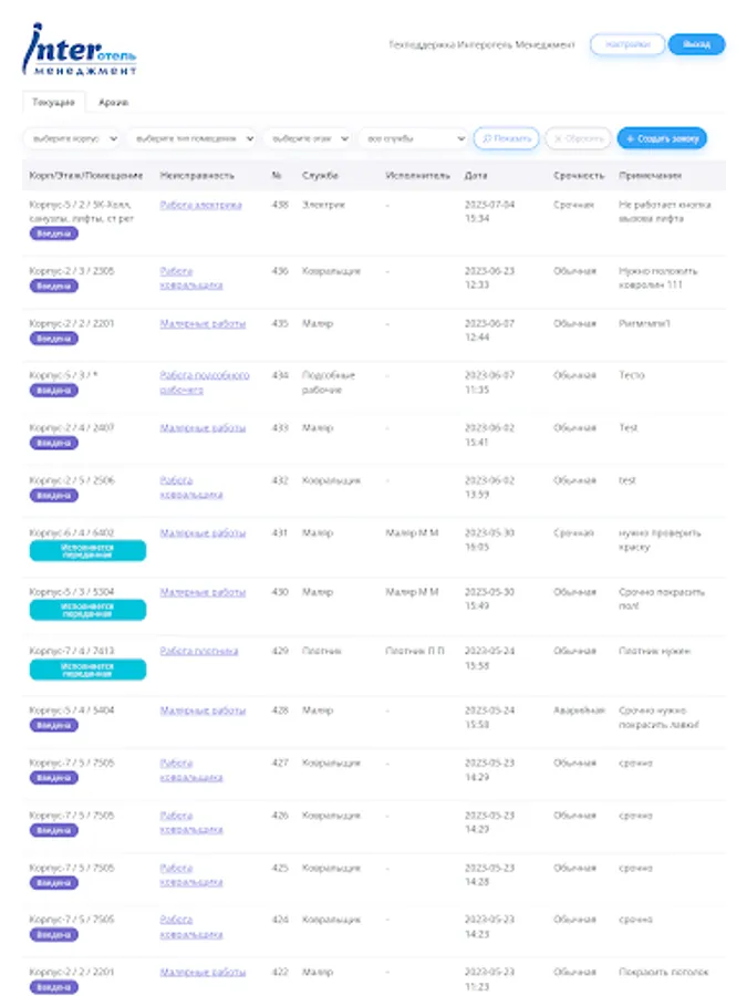 Application for service personnel of the "InterHotel - CDP" system