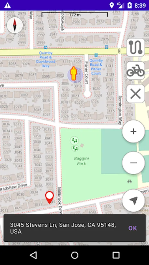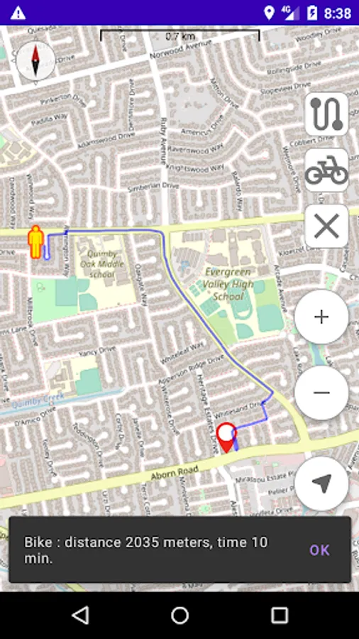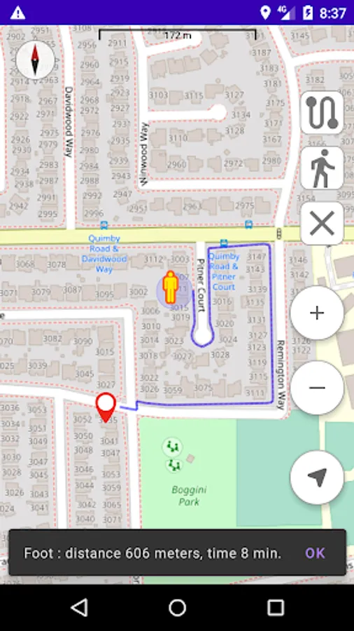The route can be shown for a pedestrian, for a cyclist or for a car.