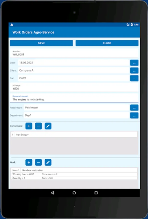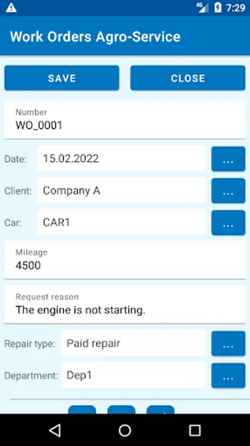 The mobile application "Order-work orders Agro-Service" was developed to automate work with work orders for service engineers.