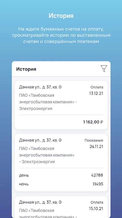 PJSC Tambov Energy Retail Company, which allows owners and tenants of residential premises to save time when paying bills and submitting testimony.