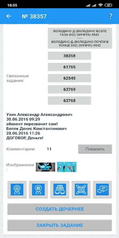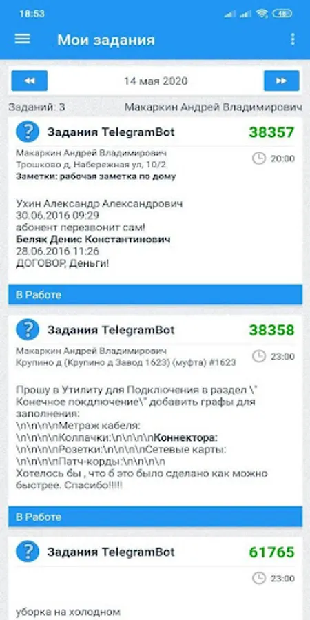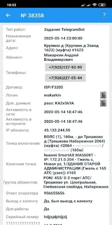 viewing a full description of each task from UserSide (subscriber, address, contacts, additional data, attached objects)