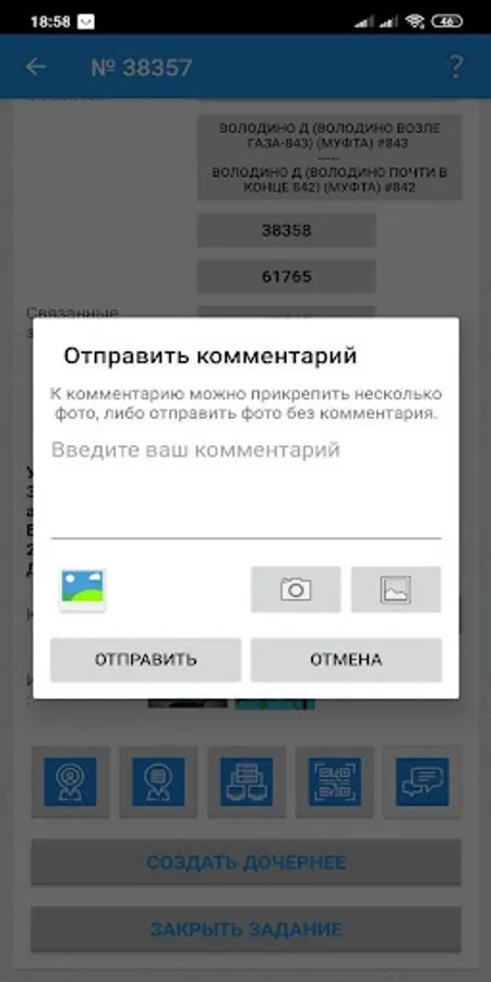 the ability to attach a photo to a comment or to a new task both from the gallery and directly from the device's camera