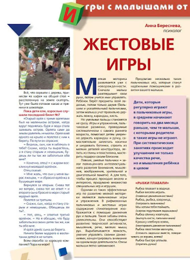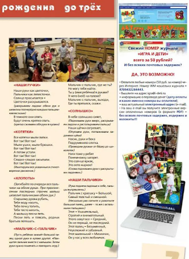 Magazine offers proven materials to help integrate the work of the staff of preschool educational institutions, primary schools and the efforts of parents with children aged 1 year to 10 years. Contains popular science and teaching materials, consulting, experience of family education, creative descriptions and didactic games, game studies, scenario events, competitions and other activities. All the materials are ready for practical use for the collective and individual work with children.