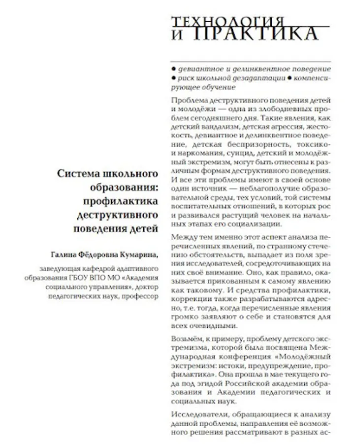 Scientific and practical journal for social workers and teachers. Support for families and children. Assistance to teachers in the organization of work with children who find themselves in difficult situations. The main headings: "Pedagogy and Politics", "Technology and Applications", "Training", "History and Theory", "Problems and discussions", "Documents and comments."