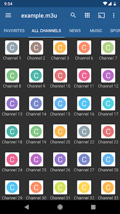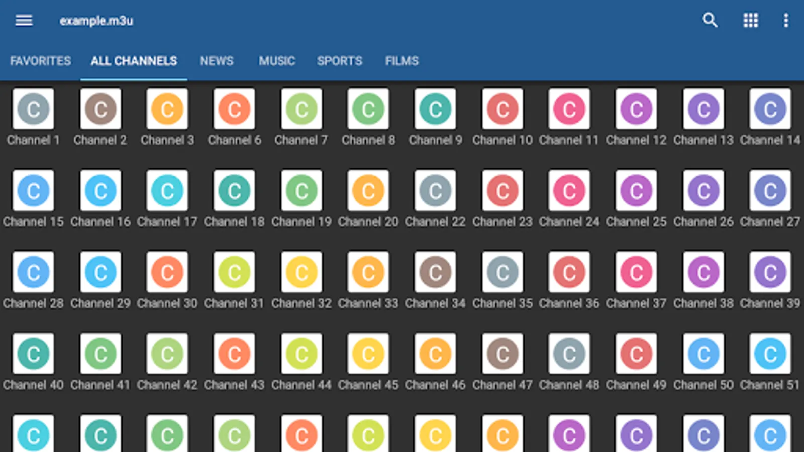 This app doesn't contain any built-in channels, you should have your playlist with TV channels to use this app.